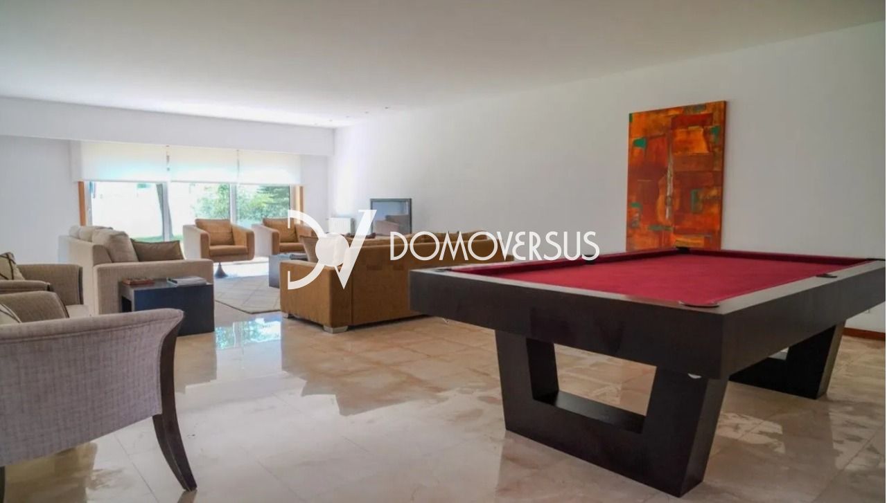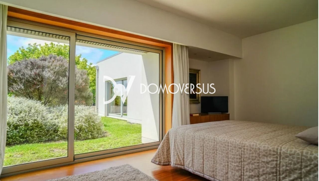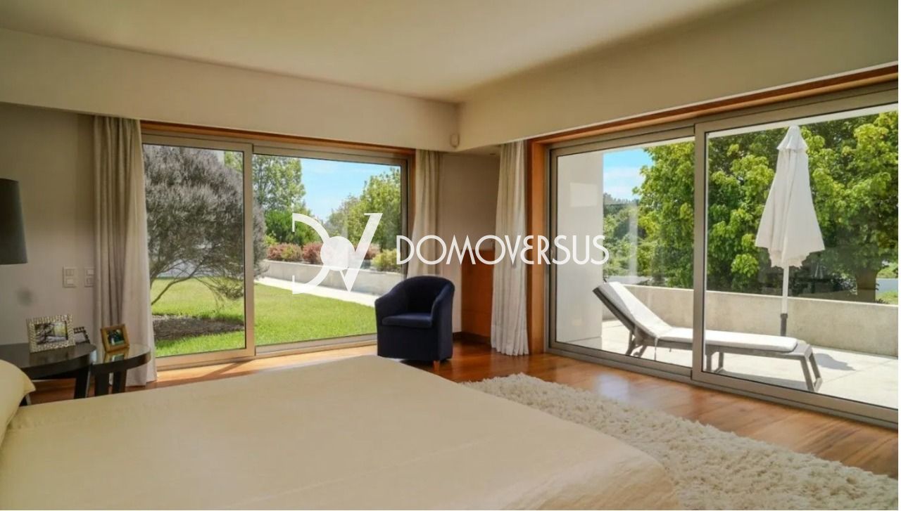Moradia T5 de luxo com jardim e piscina interior – Argivai, Póvoa de Varzim Apresentamos esta exclusiva moradia T5 de luxo, inserida num amplo lote de 4.408 m², em Argivai, Póvoa de Varzim, a apenas 20 minutos do Porto. Uma propriedade única, pensada para quem valoriza conforto, privacidade e qualidade de vida em plena harmonia com a natureza. De quatro frentes, com excelente exposição solar, esta moradia destaca-se pelas áreas interiores e exteriores generosas, elevada luminosidade natural e acabamentos de elevada qualidade. Ideal para residência permanente ou como casa de fim de semana. Principais características: •Área bruta de construção: 813 m² •5 suítes •Piscina interior aquecida •Ampla garagem com capacidade para 5 viaturas •Jardim envolvente •Aquecimento central •Aspiração central •Caixilharia com corte térmico tipo Cortizo e vidro duplo •Estores elétricos •Pavimentos exteriores e embasamento em granito e calçada Acabamentos e revestimentos de excelência: Salas •Tetos em gesso cartonado com isolamento acústico •Paredes rebocadas e pintadas, com detalhe decorativo em mármore Amarelo Negrais •Pavimentos em madeira maciça de Afizélia e mármore Crema Marfim Quartos •Pavimentos em madeira maciça de Afizélia •Armários com portas e interiores em madeira maciça Cozinha e lavandaria •Armários em madeira Tola, com tampos em mármore Preto Angola •Pavimentos em mármore Preto Angola e madeira maciça Instalações sanitárias •Revestimentos e pavimentos em mármore Branco de Estremoz Uma oportunidade rara de viver num local central, com total tranquilidade, conforto e contacto com a natureza, sem abdicar da proximidade à cidade. Qualidade, espaço e exclusividade num só imóvel